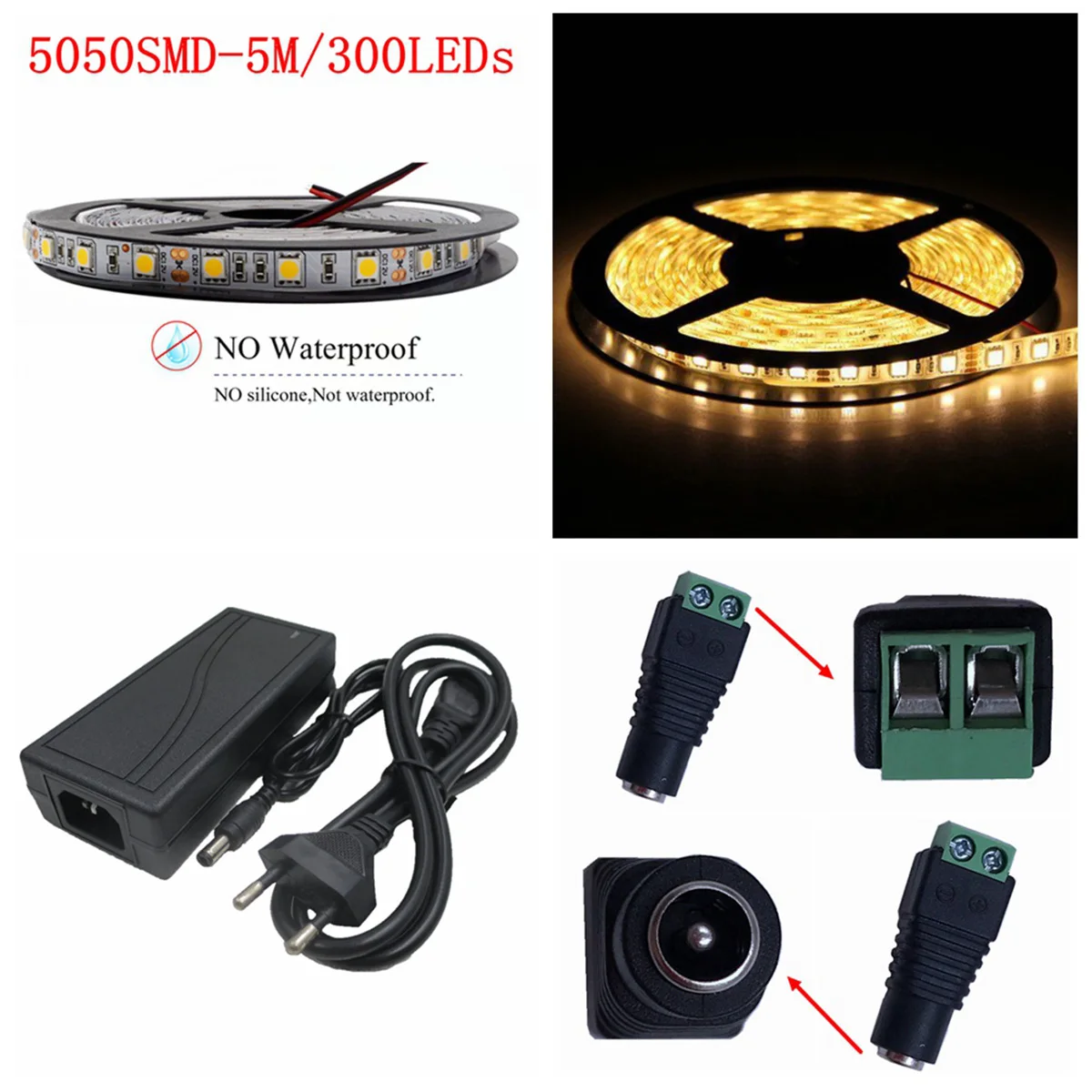 [Super Bright]: This 300LEDs strip light is 16.4ft in length, works with DC 12V voltage, giving out low heat while use.