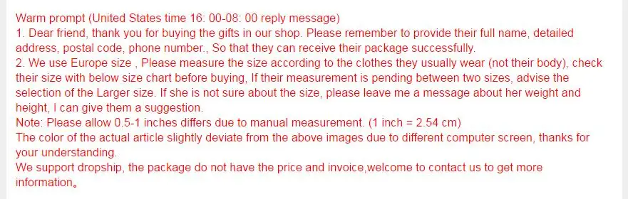 Опишите размеры продукта, включая различные размеры skus.