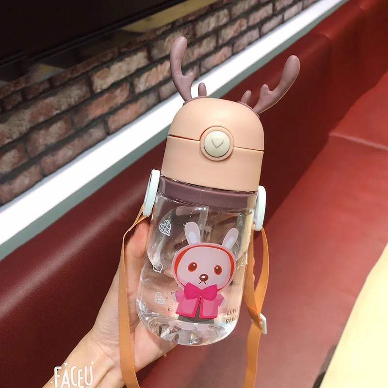 600 мл модная детская соломенная бутылка для воды с плечевым ремнем без БФА, подпрыгивающая крышка, спортивный сок, кофе, чай походные бутылки