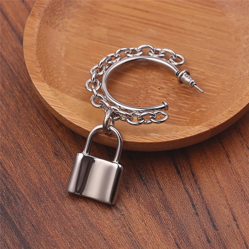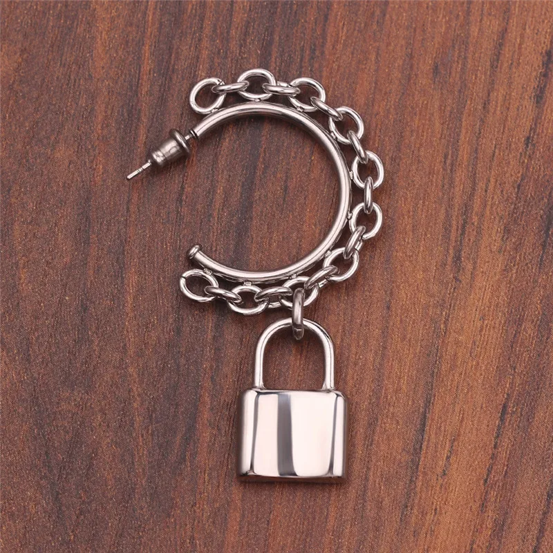 Бесплатная доставка 1 шт. Серебряный Цвет Модные Винтажные серьги-кольца для женщин и мужчин, подарок на день рождения замок для ювелирных изделий, стильные сережки-гвоздики