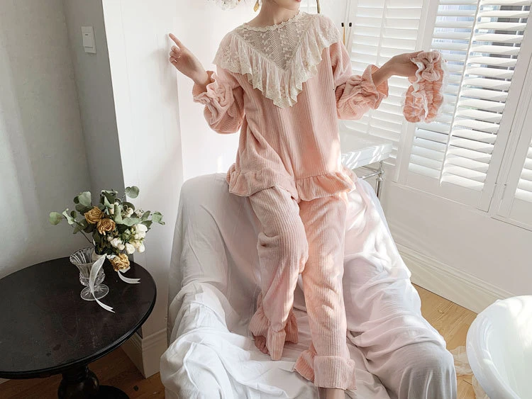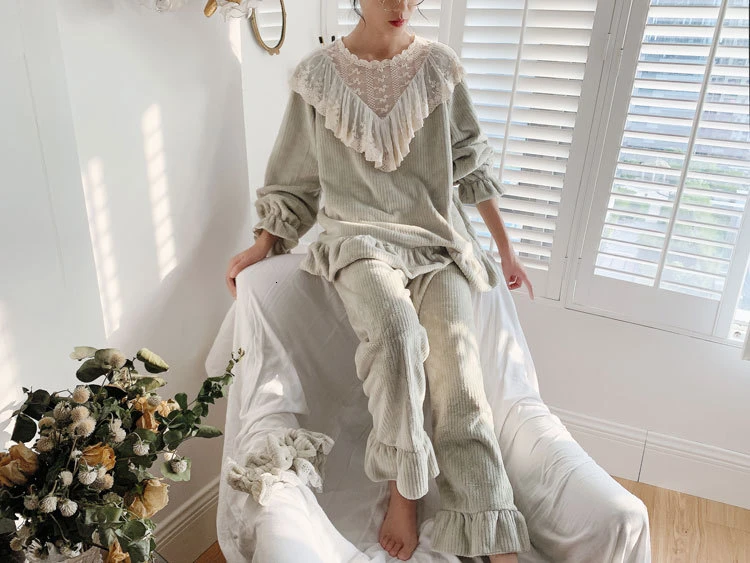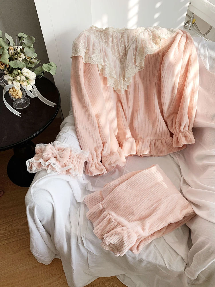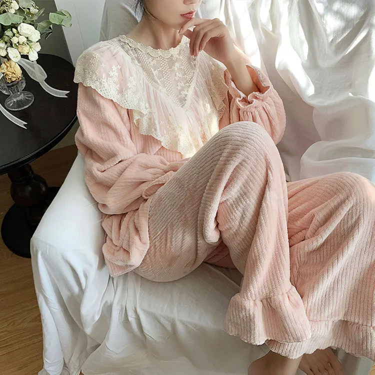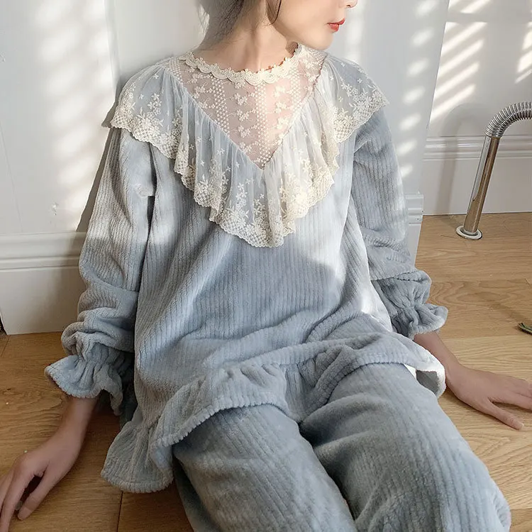 Женские пижамы зимние милая одежда для сна принцессы фланелевые повседневные с