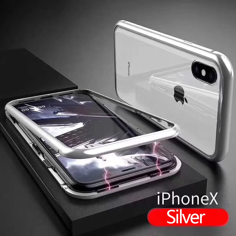 Посылка: Материал: двойное закаленное стекло Металлический стеклянный магнит мобильный телефон чехол сильное сопротивление падению, 360 ° защита Мобильный телефон, водонепроницаемый и анти-обрастания, простота установки, (магнитный чехол для телефона = мобильный телефон чехол + мобильный телефон пленка), доступная цена