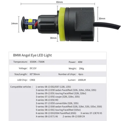 Это оптовая цена, пожалуйста, свяжитесь с нами в любое время, прежде чем сделать заказ о стоимости доставки. Мощность: 40 Вт Цвет: белый Применимость: 08-13 E82/E87 (128i, 135i) 09-13 E91 touring Facelifted (328i, 328xi) 07-13 E92 купе (328i, 328xi, 335i) 08-13 E92 M3 07-13 E93 кабриолет (328i, 335i) 08-13 E60 sedan Facelifted (528i, 528xi, 535i, 535xi, 550i) 08-13 E61 touring Facelifted (535xi) 08-13 E63/E64 обновленной (650i) 07-13E70 X5 08-13 E71 X6 09-13 E89 Z4