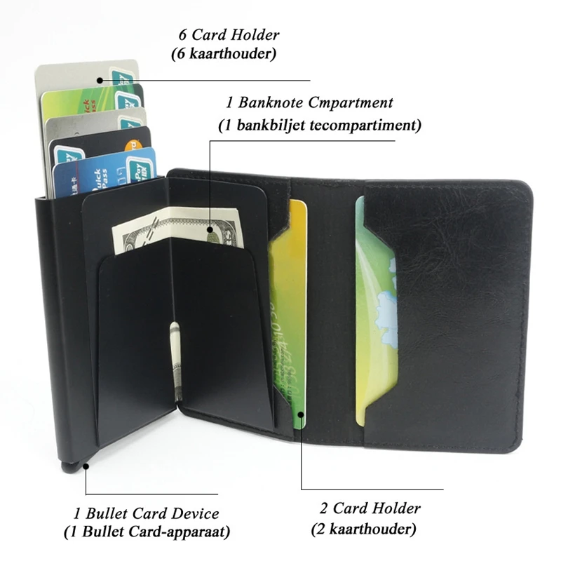 Metal Credit Card Holder Slim RFID Blocking Leather Wallet Credit ID Card Holder Men PU Leather Credit Cards Wallets