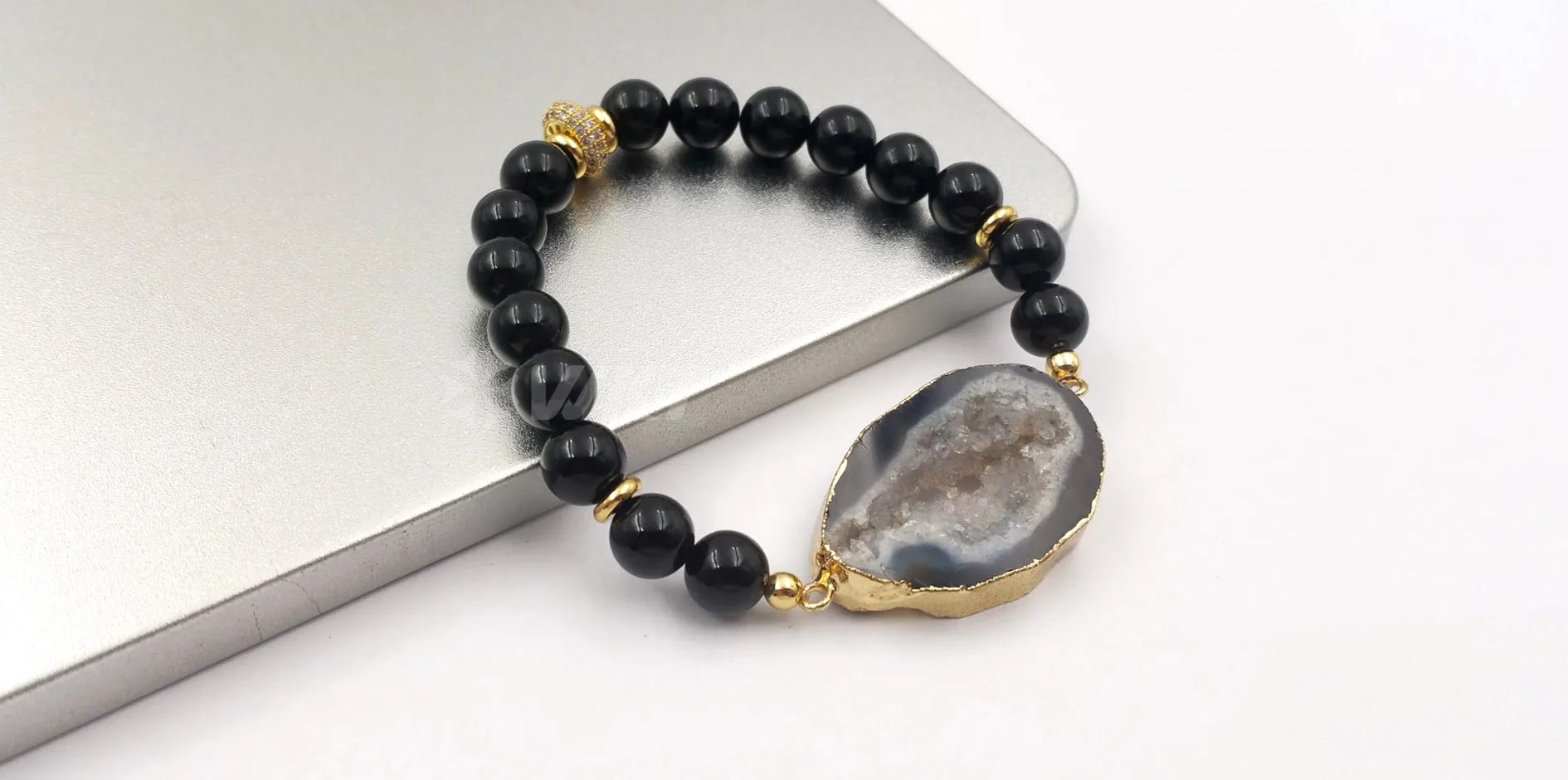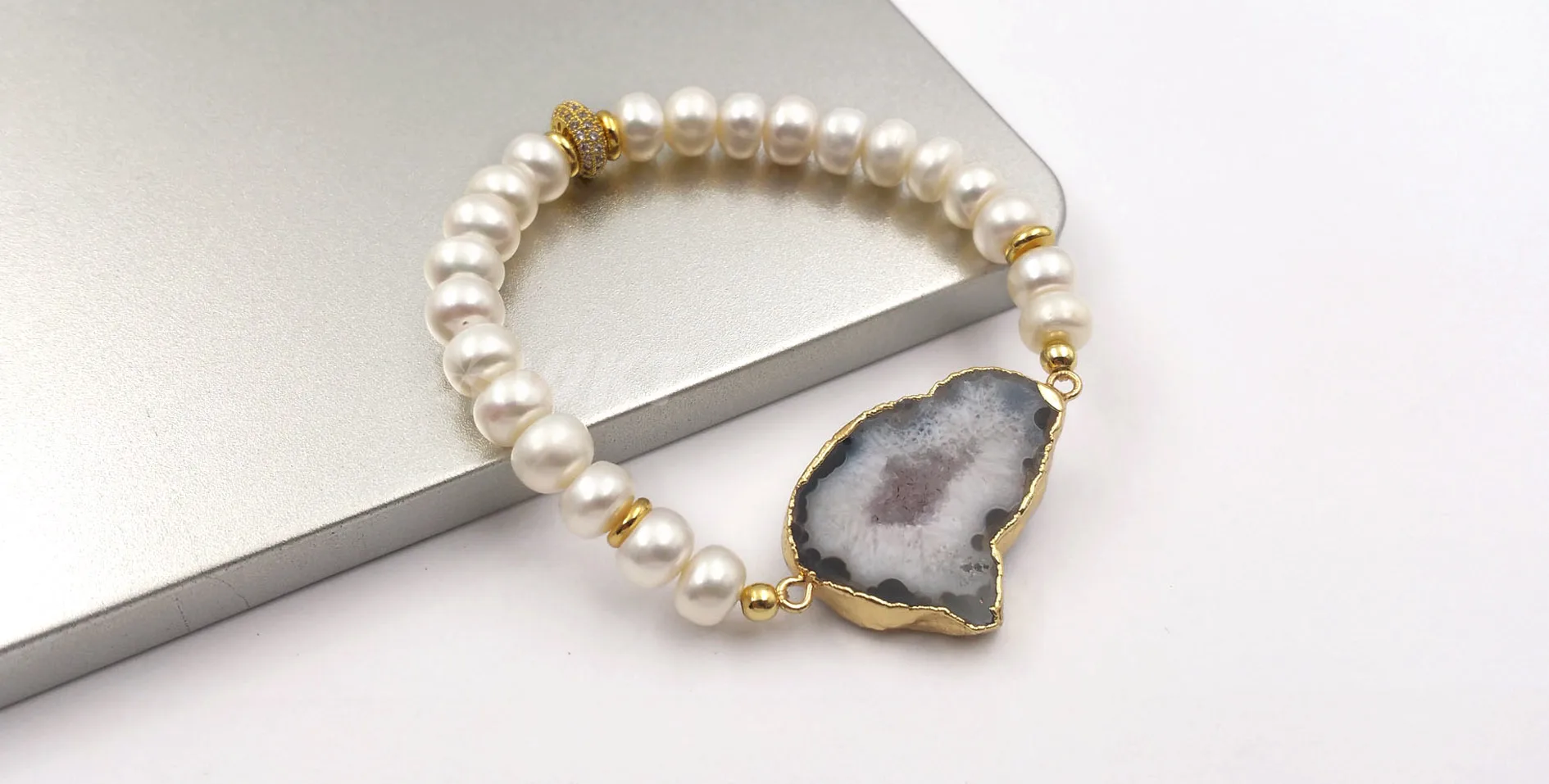 WT-B492 WKT натуральный агат Geode камень и жемчуг золотой браслет гальванической обработки Женская мода браслет ювелирные изделия