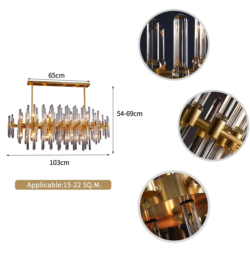 Роскошная Золотая люстра, освещение для столовой, кухни, остров, стеклянные стержни, люстры, большие современные светильники, хрустальная лампа