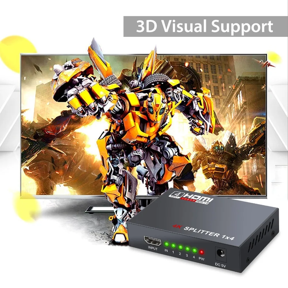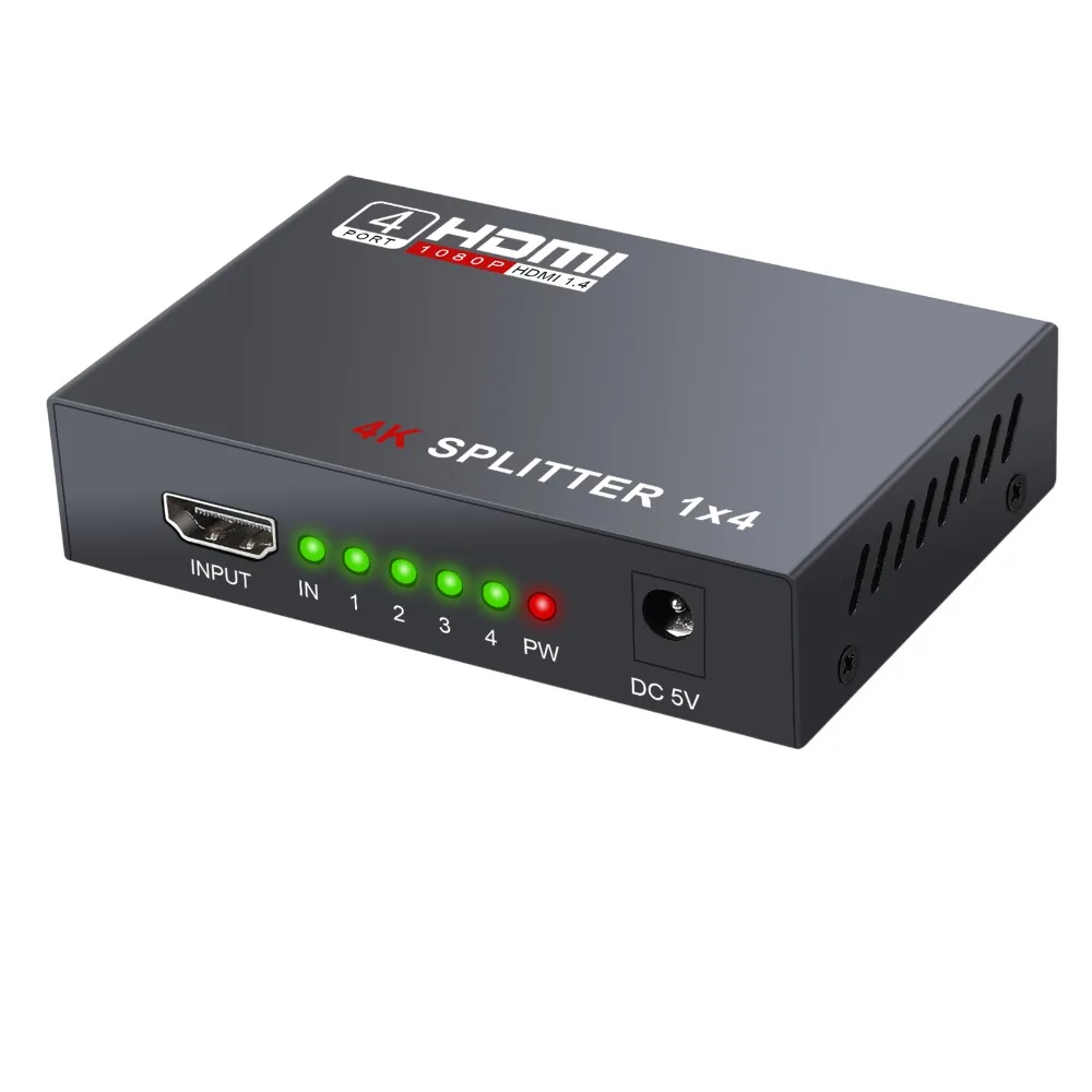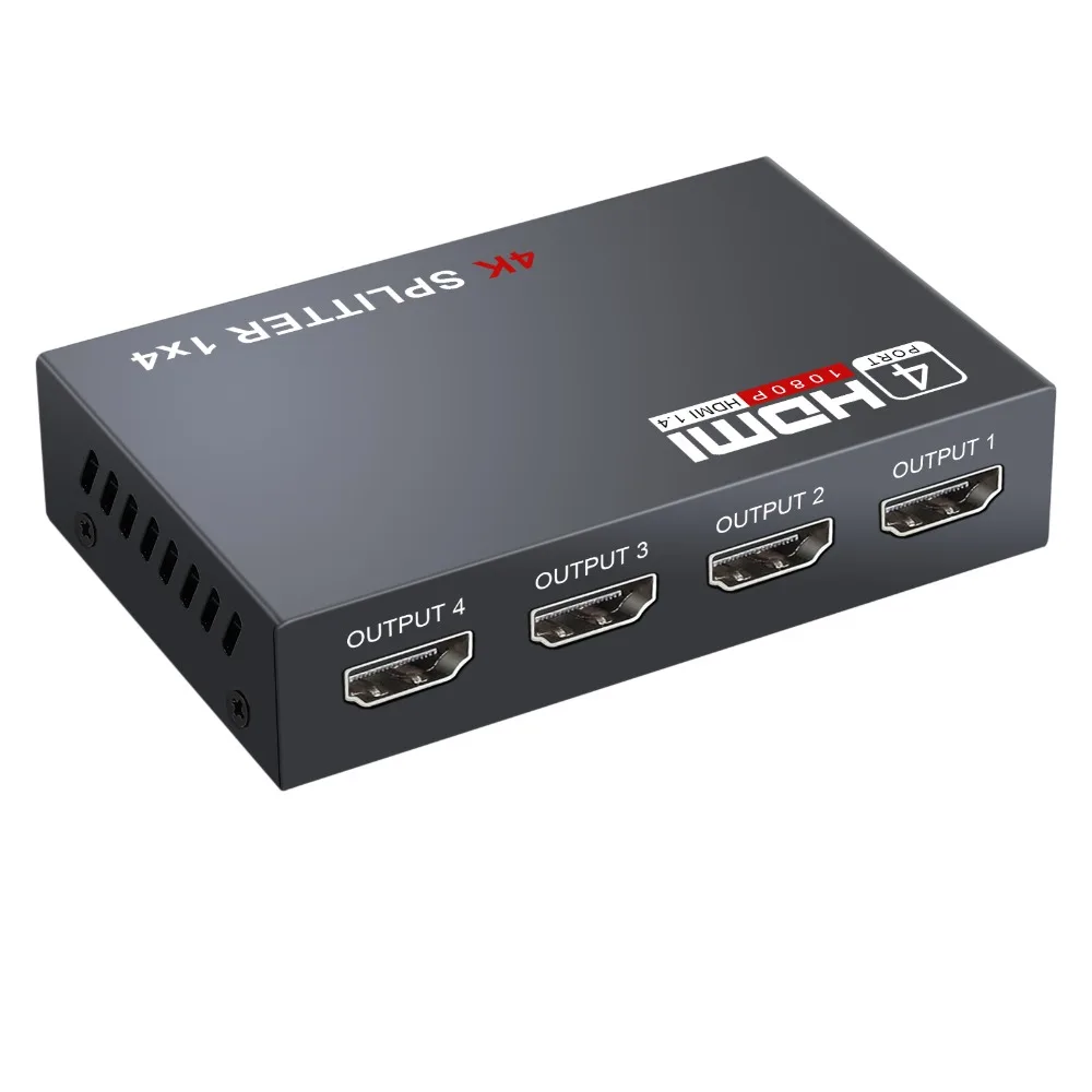 HDMI сплиттер 1 в 4 выхода, V1.4 Питание 1x4 порта коробка поддерживает Full Ultra HD 1080P 4K/2K и 3D разрешения с ПК STB PS3 Roku Blu-Ray плеер HDTV
