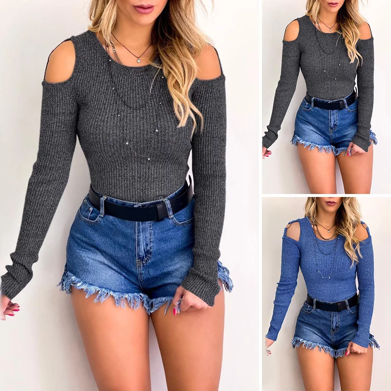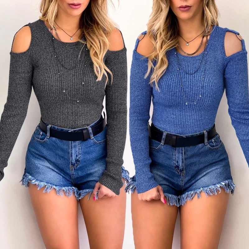 * Описание товара: сплошной цвет, сексуальный, круглый вырез, длинный рукав, облегающий крой