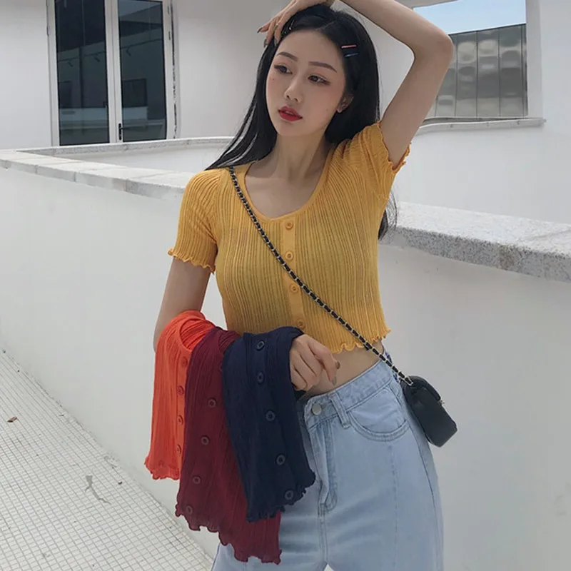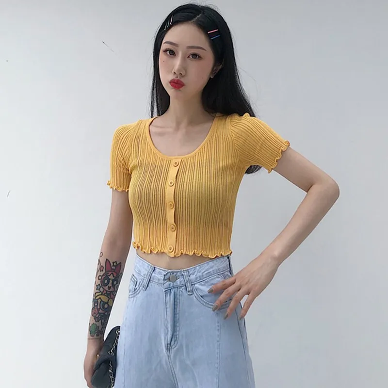 Особенности: Корейская версия, темперамент, дикий, грибок, пупок, трикотаж, короткий рукав