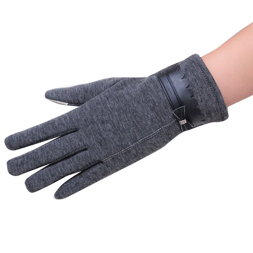 Модные женские зимние теплые перчатки с бантом