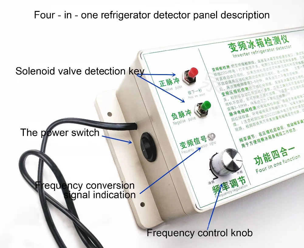Четыре в одном инверторный детектор холодильника: небольшой размер, светильник вес, Полная функциональность, удобство переноски 。 это может эффективно повысить эффективность обслуживания., уменьшить ошибочное суждение 。 детектор может: компрессор холодильника с преобразователем частоты с прямым запуском (подрядчик преобразователя частоты для холодильника) детектор может напрямую управлять преобразователем частоты холодильника бортовой детектор, чтобы напрямую судить о качестве бистабильного импульсного клапана, регулирующ рабочую частоту компрессора, наблюдая состоянием оператинг каждой частоты.