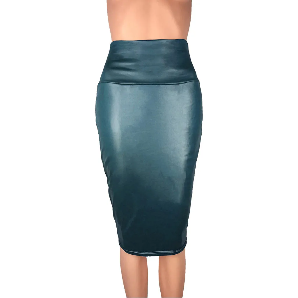 Женская юбка с высокой талией и коленом, сексуальная кожаная юбка на бедрах
