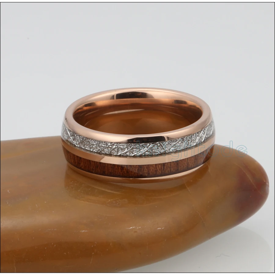 8 мм розовое золото вольфрамовое кольцо природа метеорит/Koa дерево купол полировка