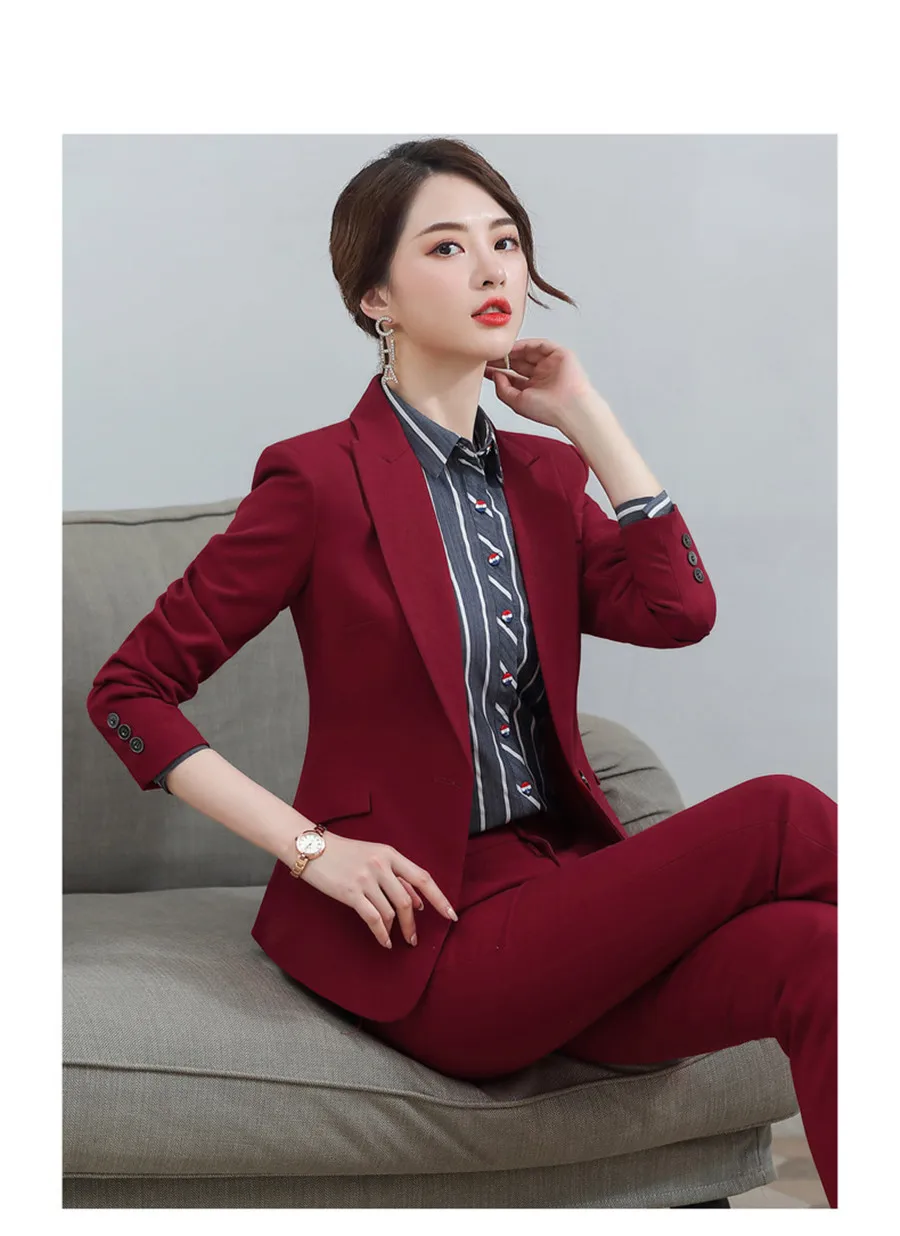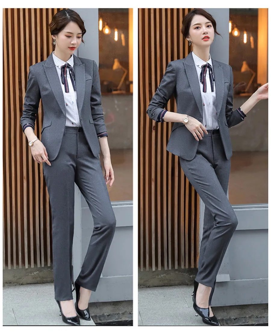 Женский классический костюм из 2 предметов блейзер и брюки офисный весна |