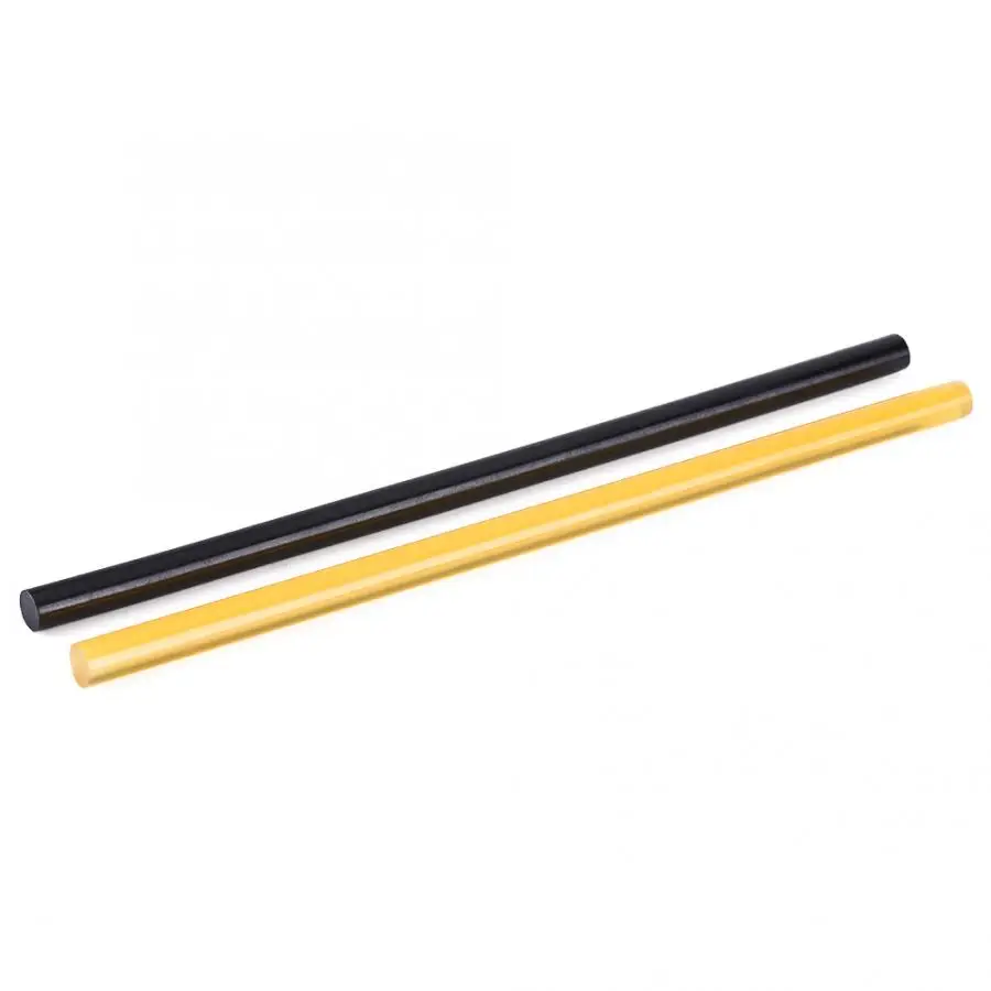 A set of 10 pieces hot melt glue sticks including 5 yellow color sticks and 5 black color sticks.