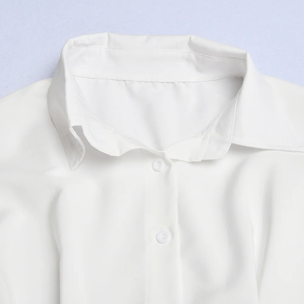 Белое платье-рубашка женское повседневное уличная одежда с длинными рукавами