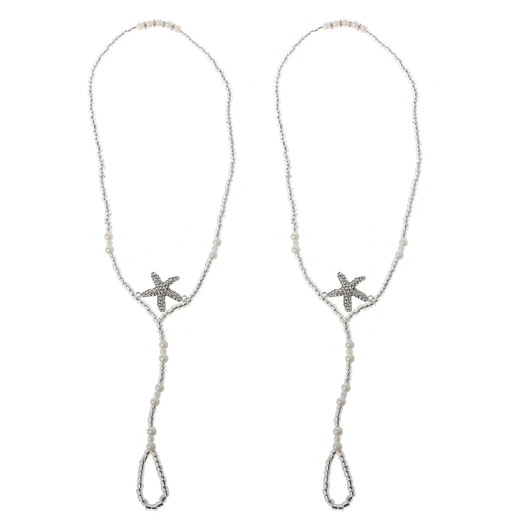 2 шт. жемчужный ножной браслет Пляжная Свадебная бижутерия для ног Сандалеты с