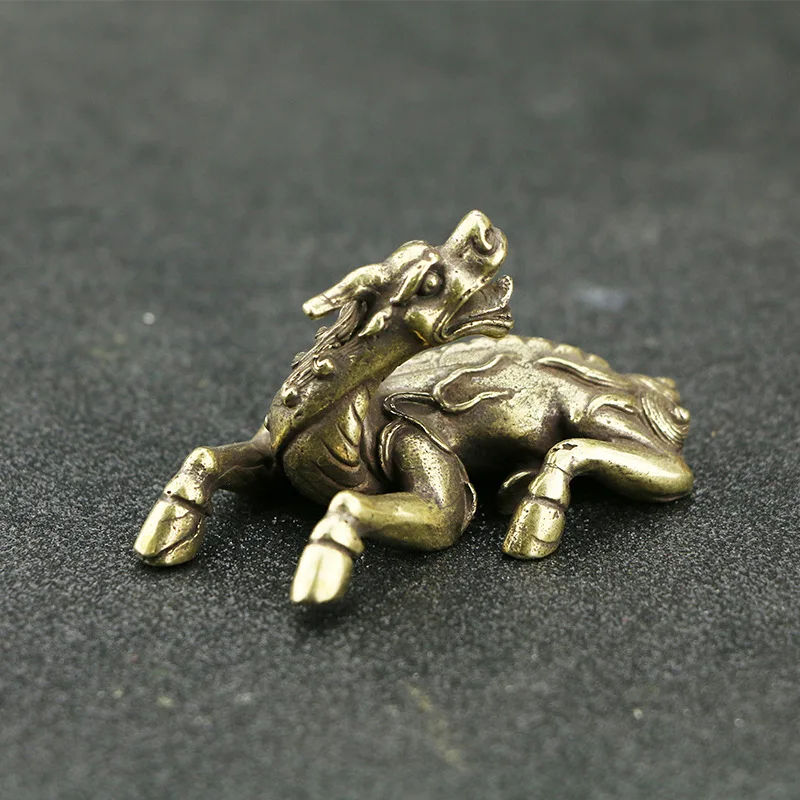 Античные медные китайские мифологические животные отважный солдат голова льва лошадь копыта фэн шуй украшения латунные фигурки домашний декор