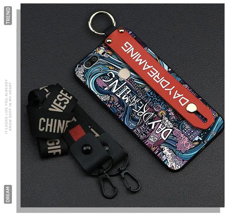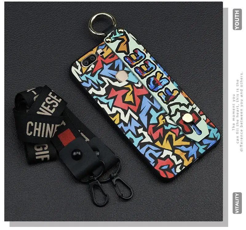 Phone Case For Huawei Honor V8 5.7-inch Delicate TPU Silicone Cover Phone Holder Lanyard Shockproof Graffiti Series