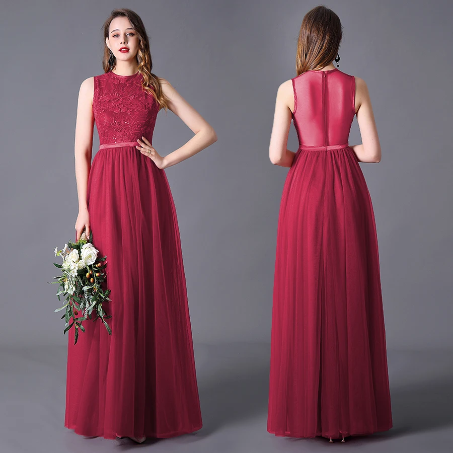 Женское вечернее платье до пола длинное бархатное с круглым вырезом для банкета