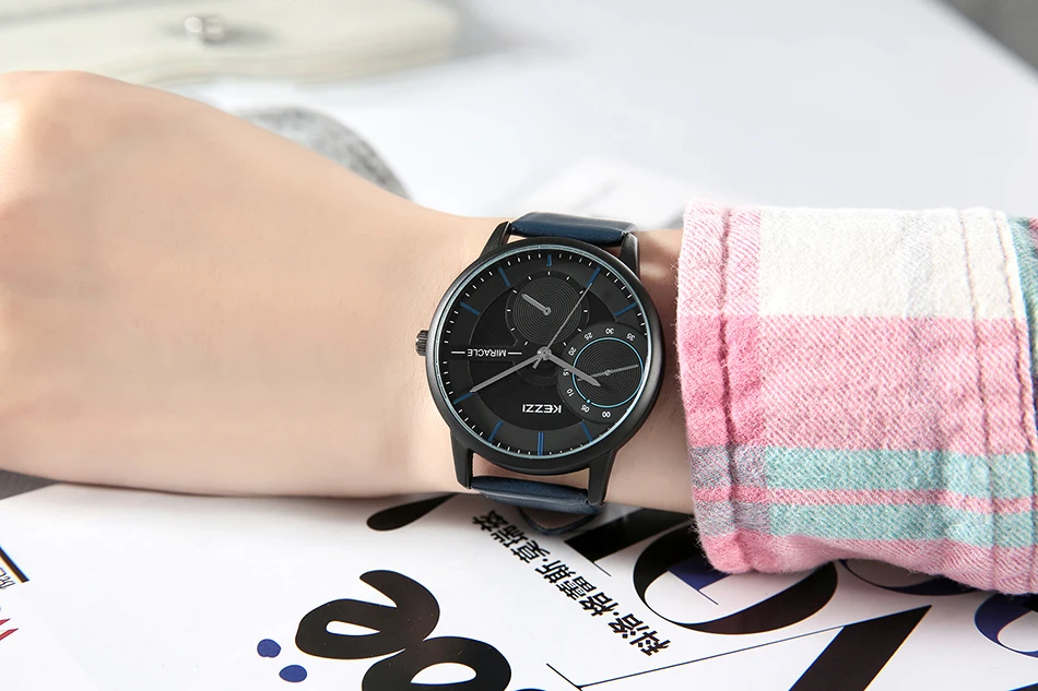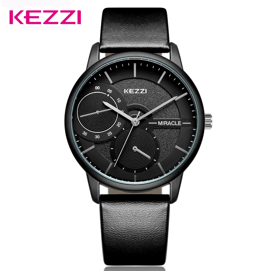 KEZZI мужские креативные часы модные кварцевые часы с двойным дисплеем Водонепроницаемые кожаные часы женские наручные часы Rejoi