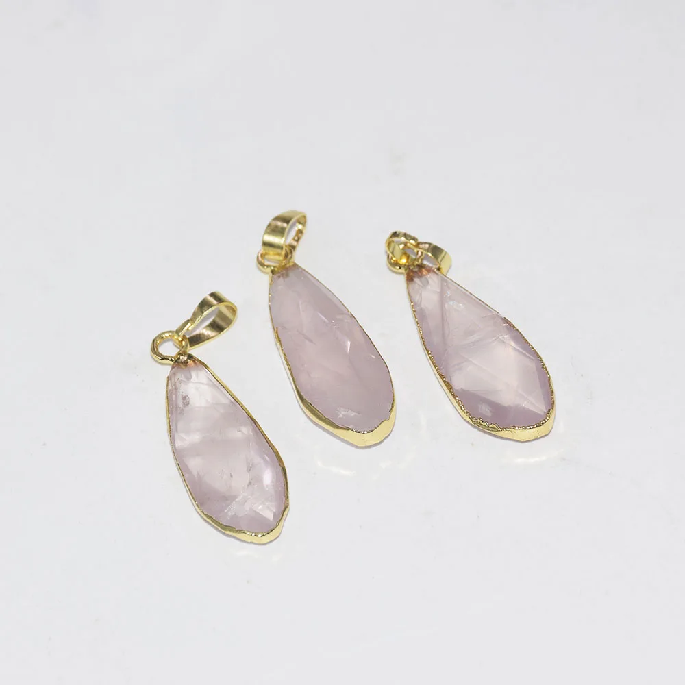 Женское длинное ожерелье с подвеской в виде капли из Натурального Розового Кварца, Кварцевая точечная подвеска с розовым кристаллом, 2019