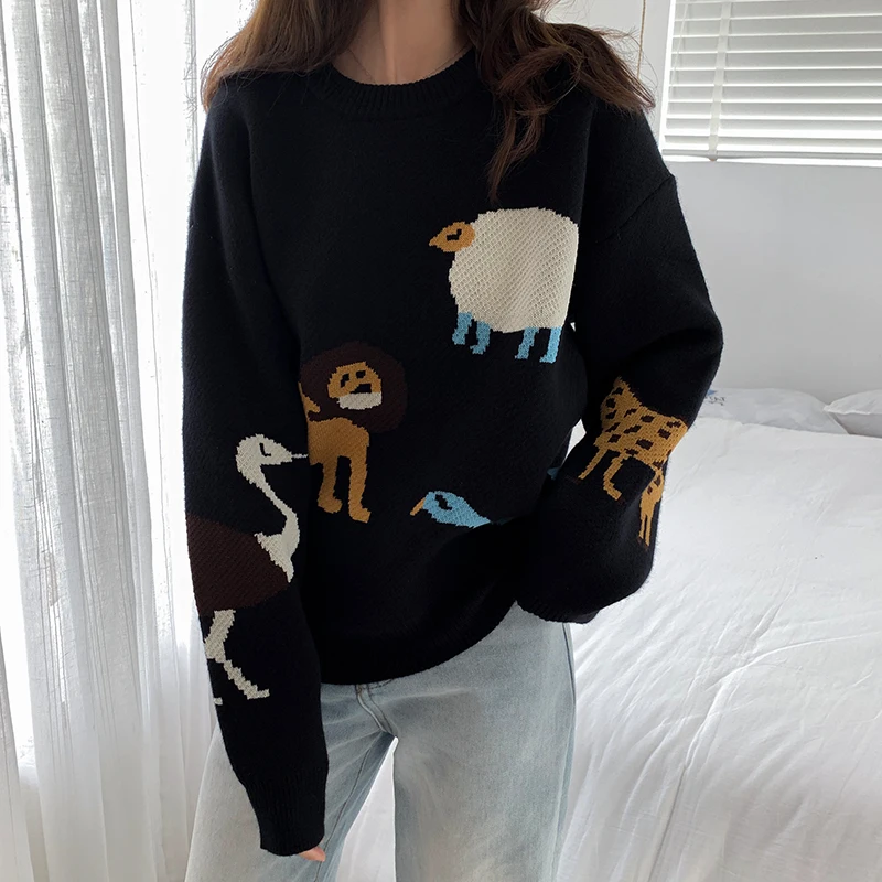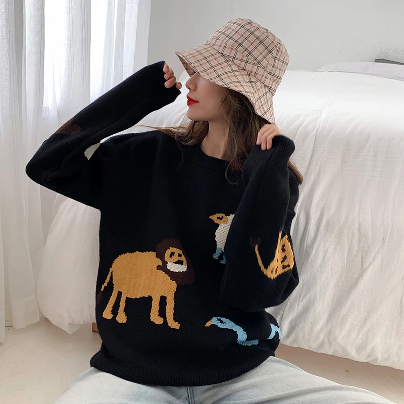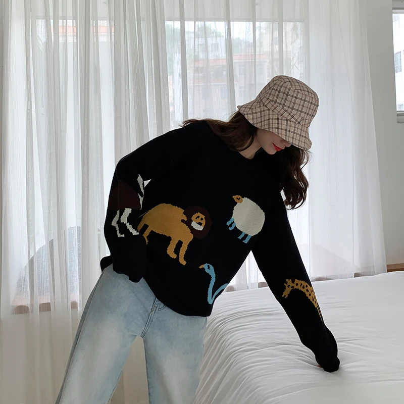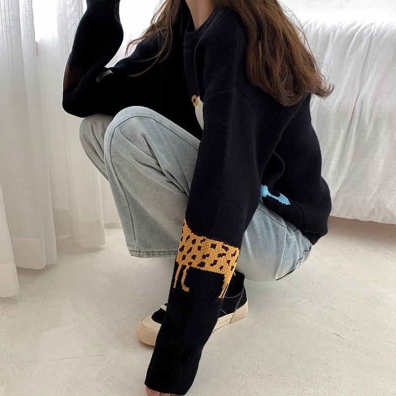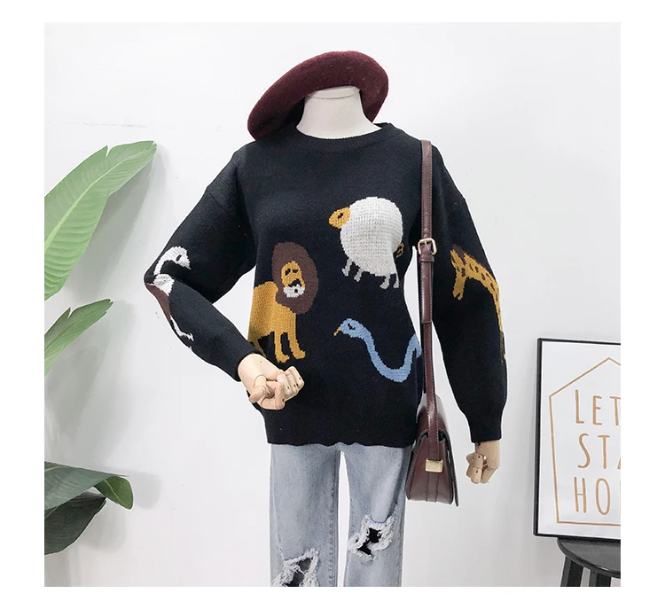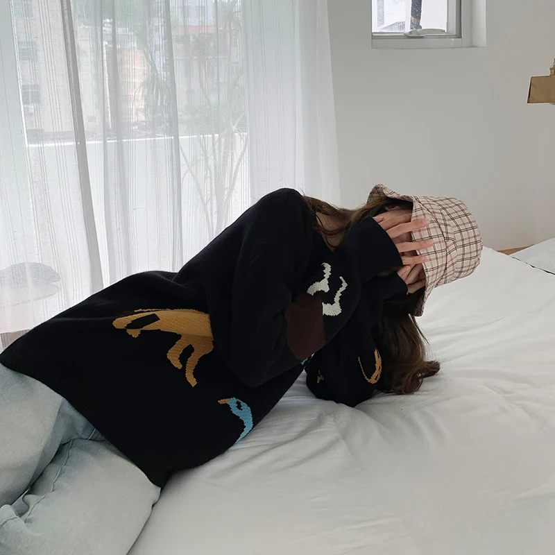 Свитер женский осенне-зимний трикотажный свободный универсальный короткий с