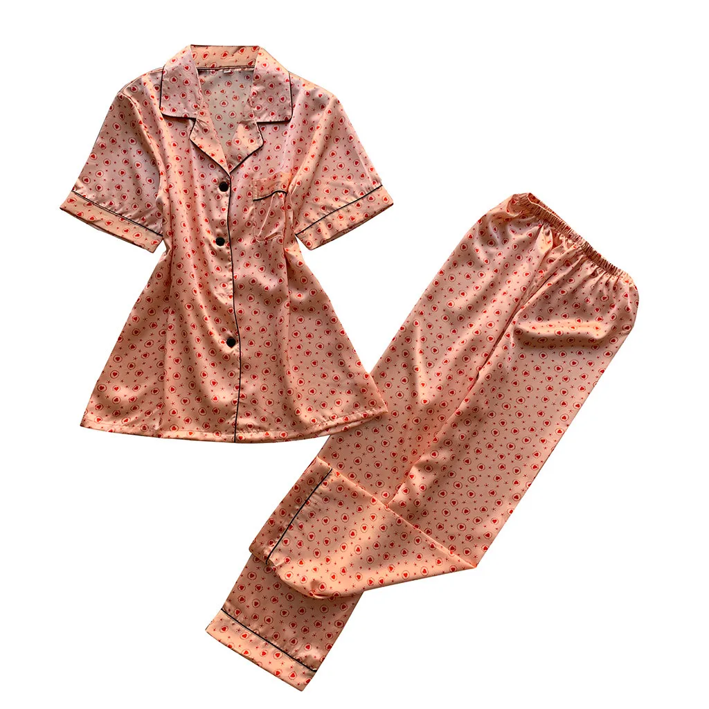 Женские пижамные комплекты с коротким рукавом, имитация шелка, короткие рукава, длинные штаны, дамские пижамы высокого качества, ночное белье, комплект одежды для сна L42