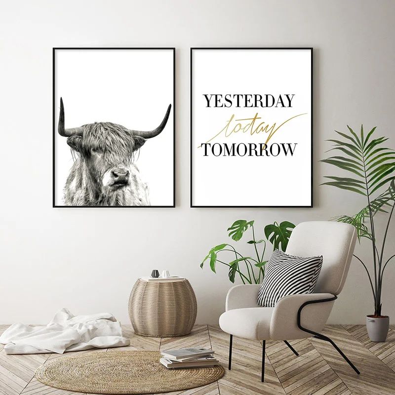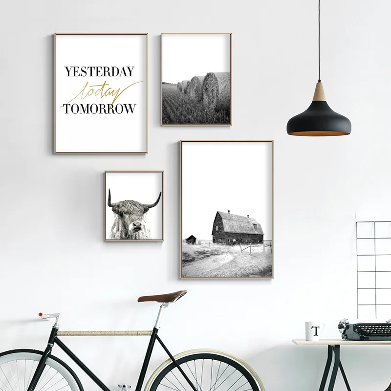 Скандинавская ферма корова дом пейзаж холст картина мотивационный плакат черная