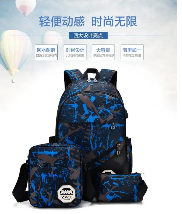 Школьные сумки для мальчиков, водонепроницаемый большой рюкзак для подростков, школьный рюкзак для мальчиков, студенческий нагрудный мешок, набор размеров: 46, 30 и 15 см