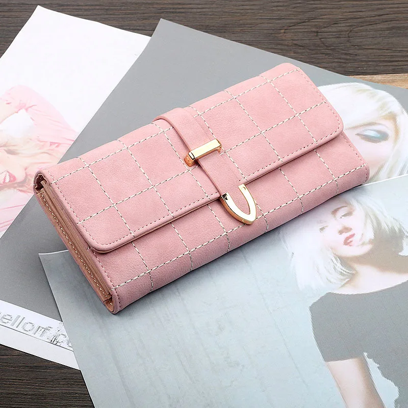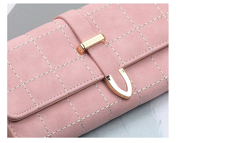 2019 Korean fashion pu leather women long wallet Triple folding purses Ladies clutch Female matte plaid wallet black