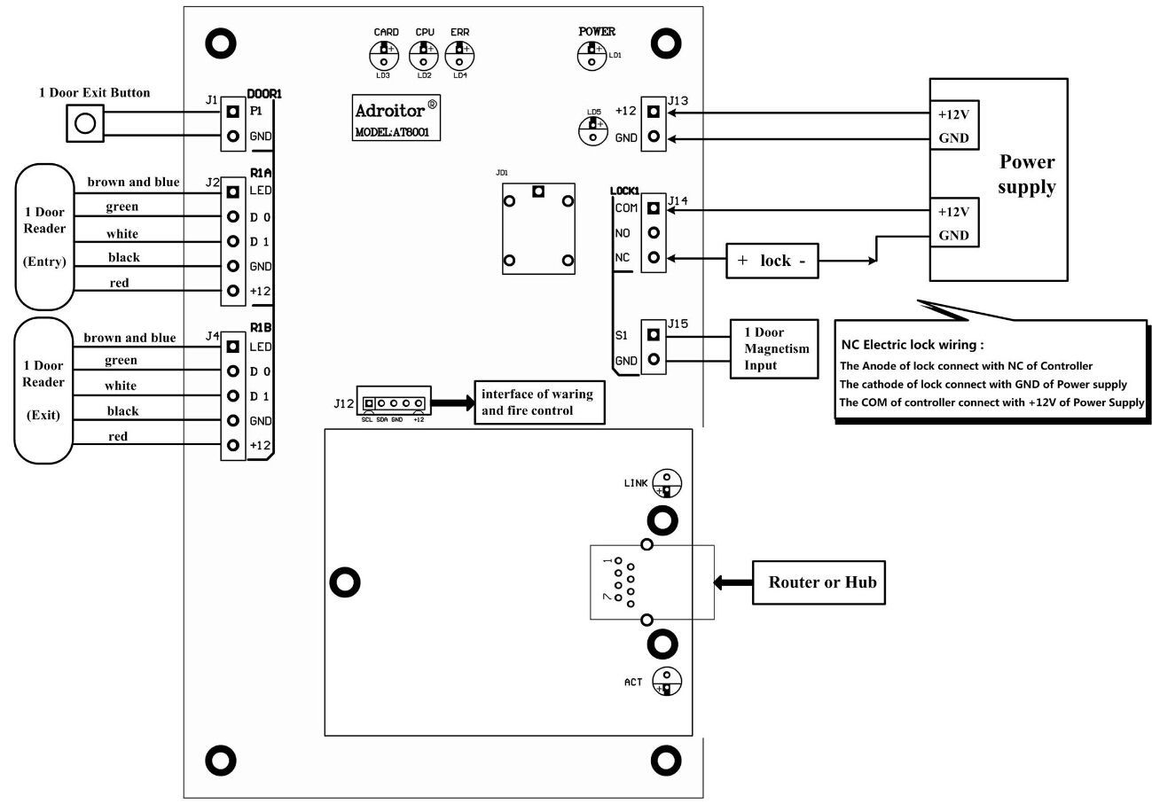 Примечание: дверь может быть установлена для открытия только при нажатии чтения карт и пин-кода. |