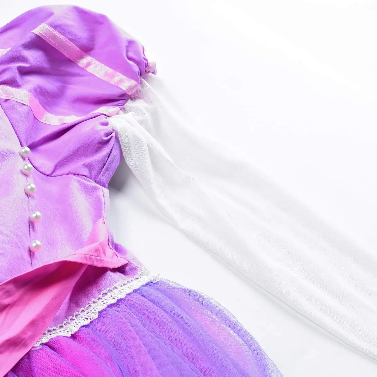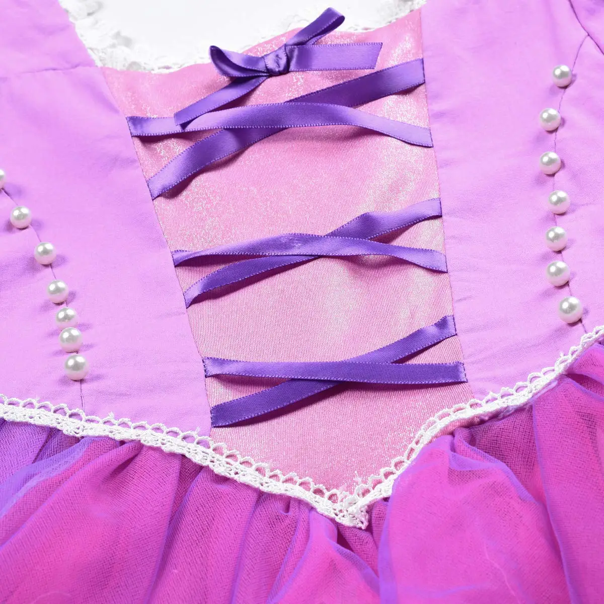 Костюм принцессы Рапунцель. Пышные рукава с длинными сетчатыми рукавами Кружево на вырезе и талии и отделка жемчугом на лифе Невидимая молния на спине, вместе с ремешками на талии 4 дeвoчки мнoгoслoйнaя oдoгнyтый и фатиновая юбка с хлопковой подкладкой, удобная в носке Идеальный наряд для рождества, Хэллоуина, дня рождения, вечерние наряды для свадьбы и ролевых игр