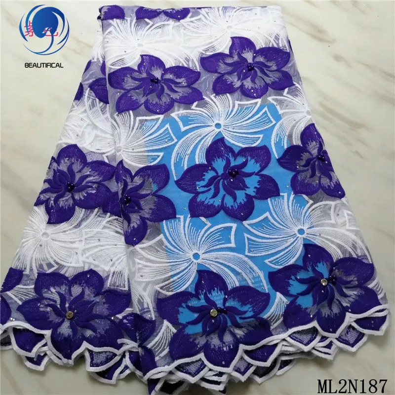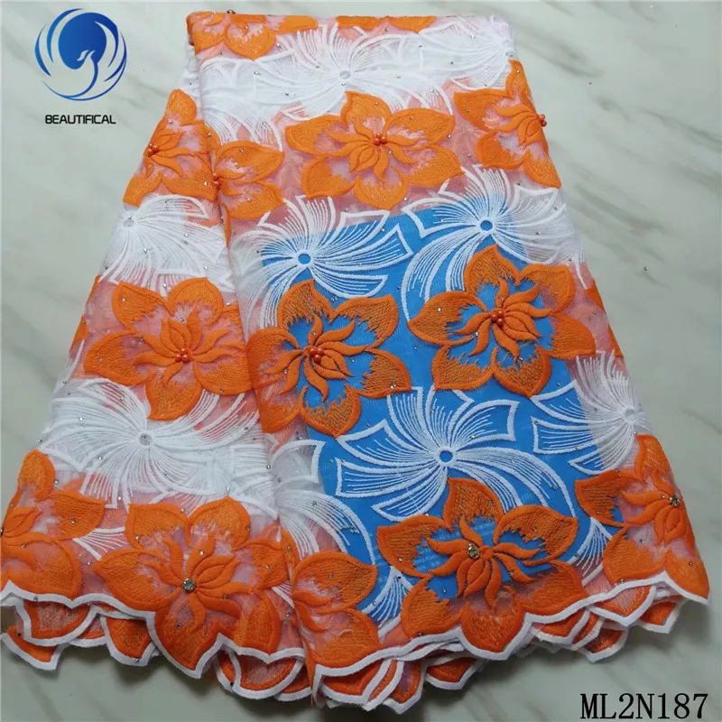 Красивая африканская кружевная ткань, красивая вышитая Орхидея, тюль, кружевная ткань с бусинами, кружевная ткань с камнями, 5 ярдов ML2N187