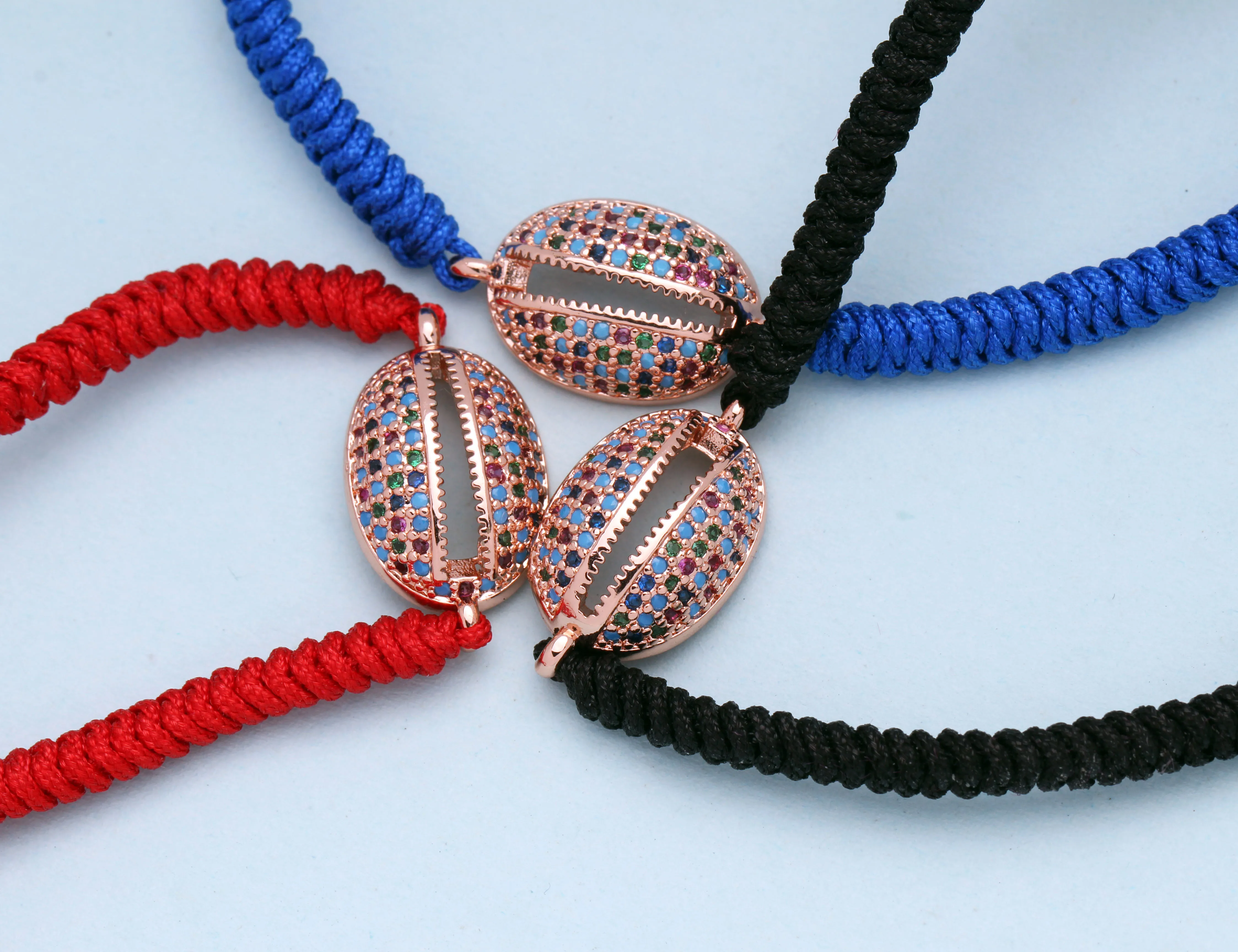 Цветной CZ Кристалл тибетский буддийский счастливый узел макраме медный браслет с ракушками Плетеный Черный Красный Синий шнур плетеные ювелирные изделия он