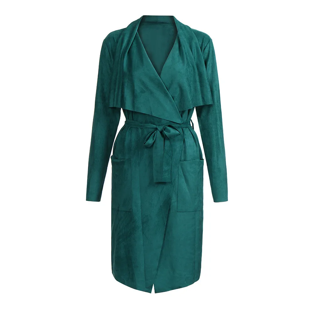 Это повседневное длинное пальто имеет однотонный дизайн, длинный рукав для фиксации и модный дизайн. Легкая и неэластичная ткань. Свободный силуэт.