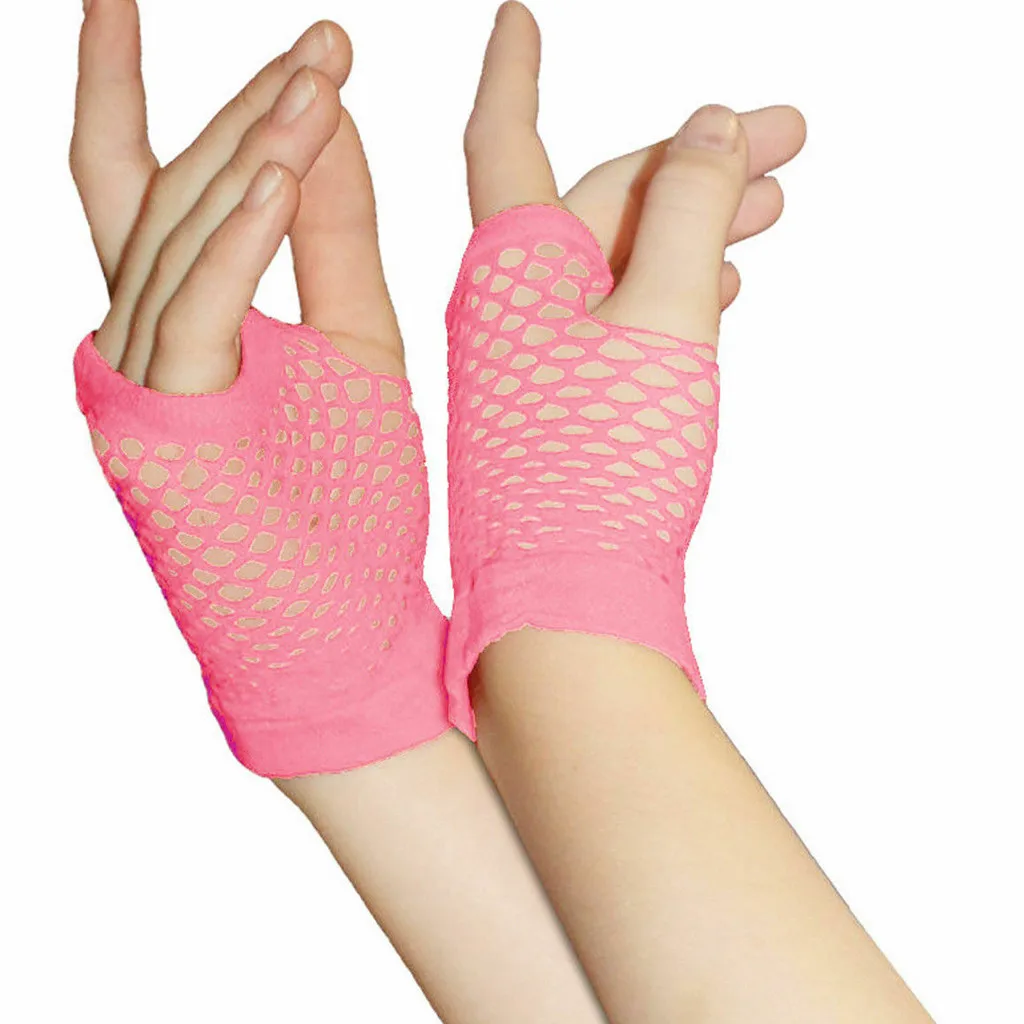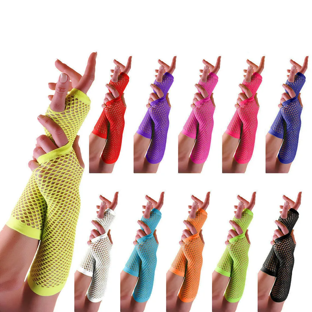 Женский танцевальный костюм в стиле панк Goth, кружевные сетчатые перчатки без пальцев, модные летние перчатки ярких цветов без пальцев
