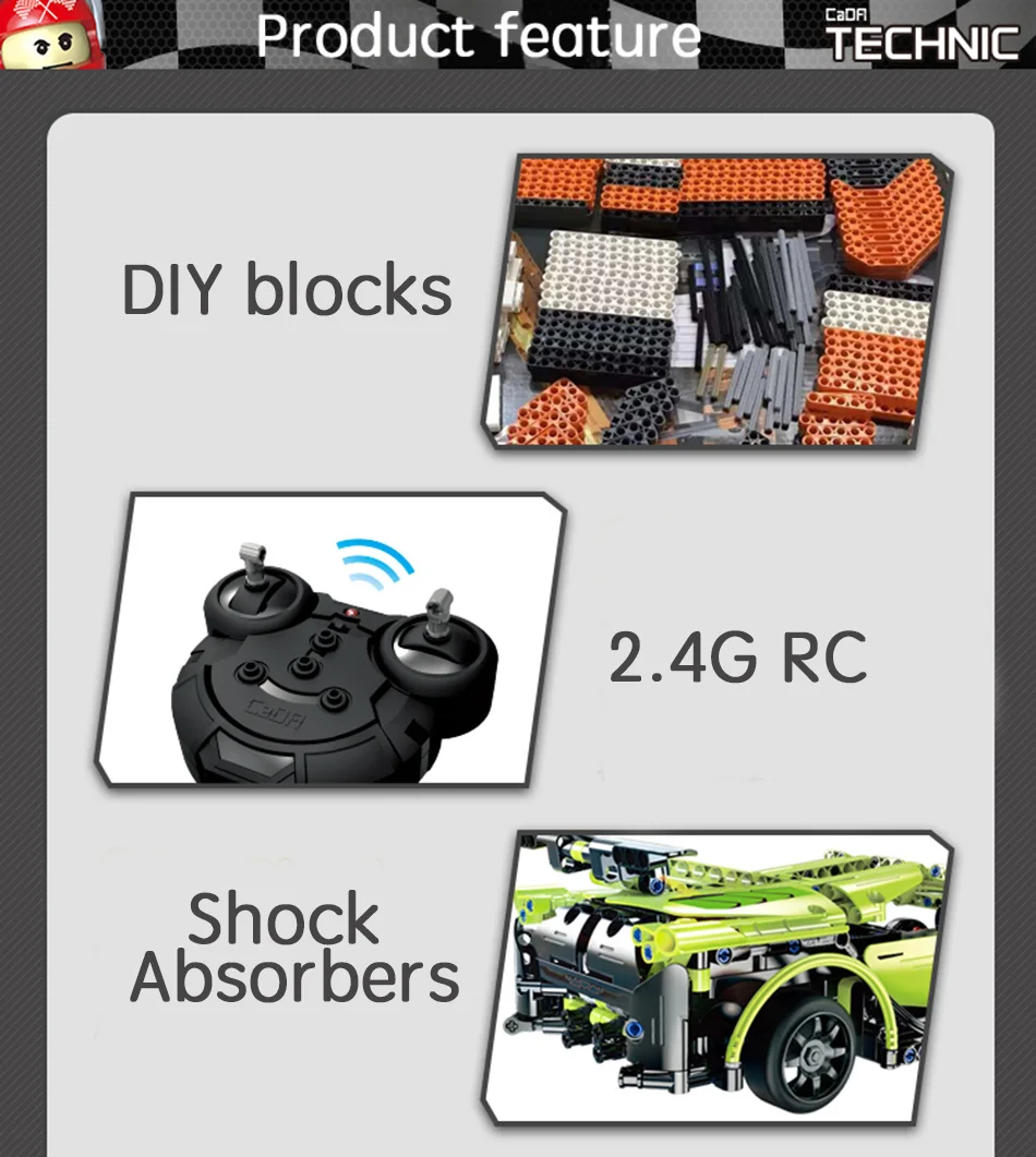 Посылка 1 х конструктор RC модель автомобиля 1 х пульт дистанционного управления 1 х Руководство пользователя 1 х аккумуляторная батарея 1 х зарядный кабель Описание: Количество кирпичей: 453 шт./компл. Материал: 100% новый безопасный АБС-пластик Размер: 32,1 см * 13,7 см * 10,3 см Автомобильный аккумулятор: перезаряжаемый аккумулятор (входит в комплект) Батарея пульта дистанционного управления: батарея AA (не входит в комплект) Расстояние дистанционного управления: 20-25 м Упаковка: цветная коробка Размер упаковки: 44*34*9 см Если у вас есть какие-либо вопросы, дайте мне знать. ------------------------- Изображение продукта ----------------Смотрите так же другие товары:
