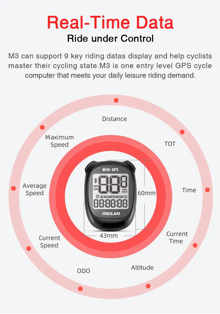 9. Участвуете ли вы в соревнованиях, ежедневном фитнесе, или просто хотите узнать, сколько вы едете на выходные, M3 MINI GPS велокомпьютер-это правильный выбор.