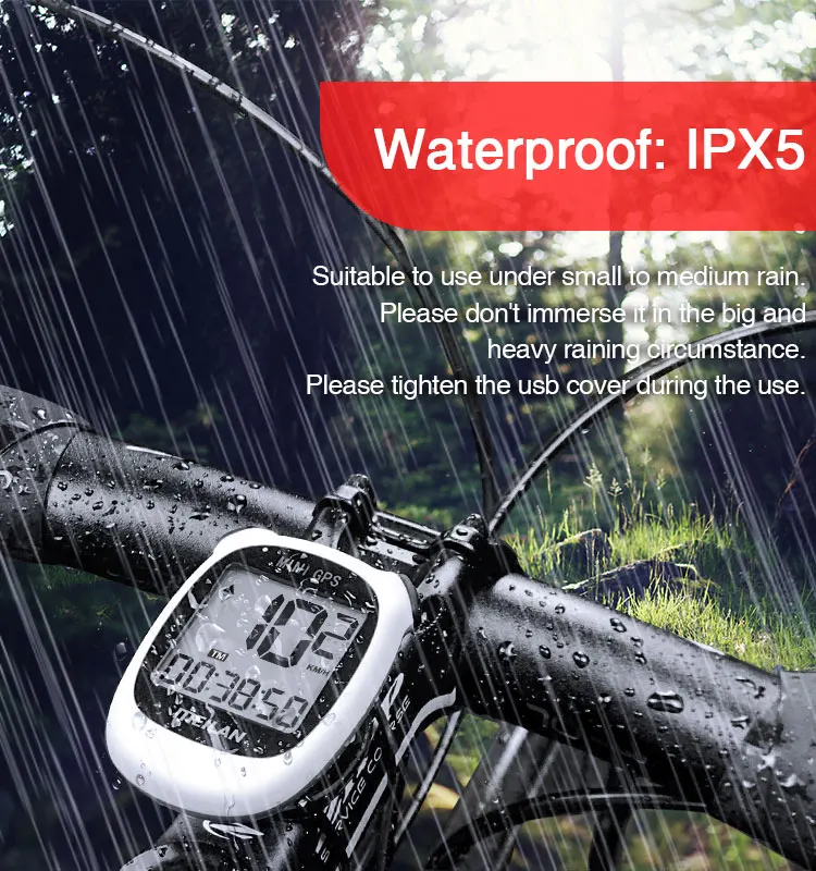 4. Простота установки, отсутствие проблем с традиционными проводными велосипедными компьютерами, нет необходимости фиксировать датчик скорости и магнит, делает ваш велосипед чистым. IPX6 Водонепроницаемый, не беспокойтесь о дождливые дни.