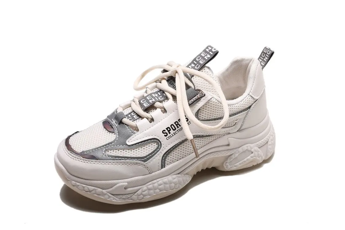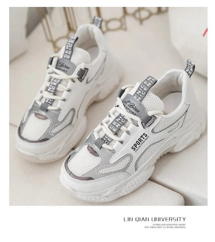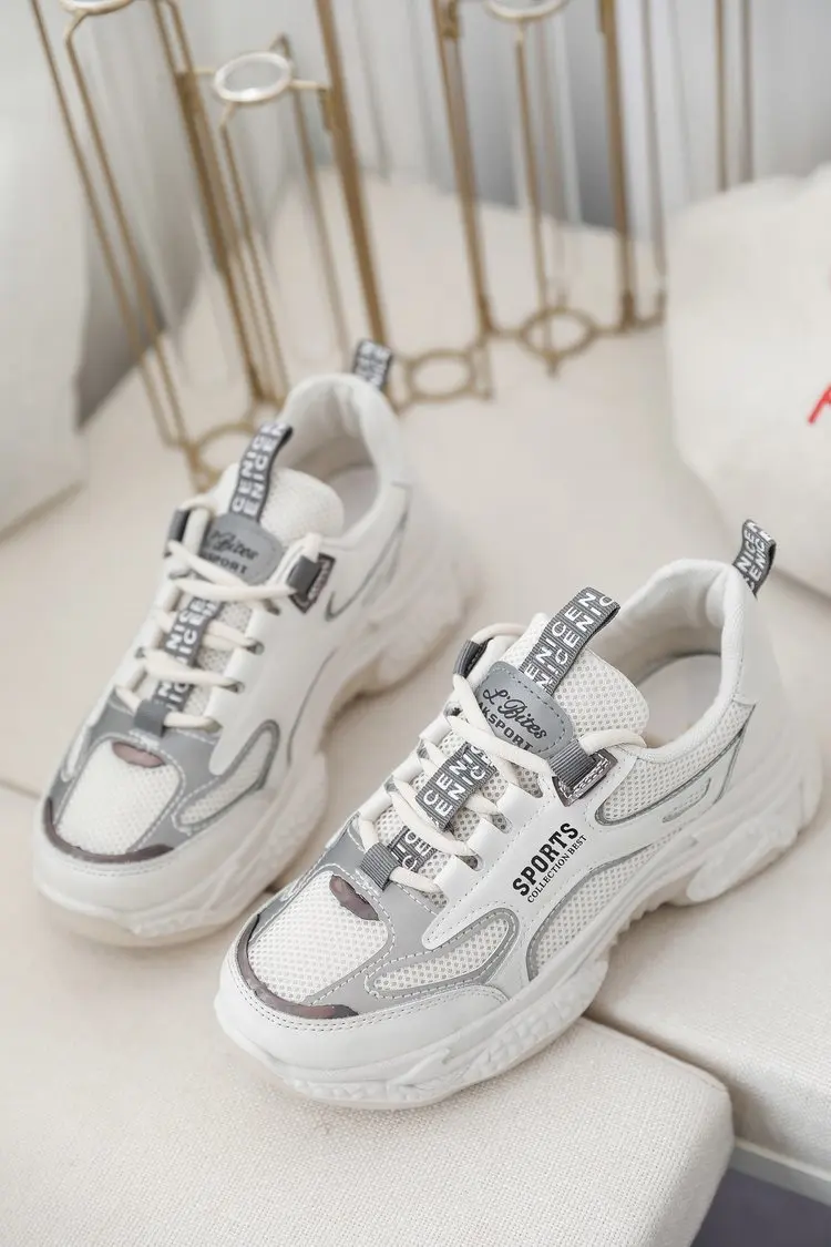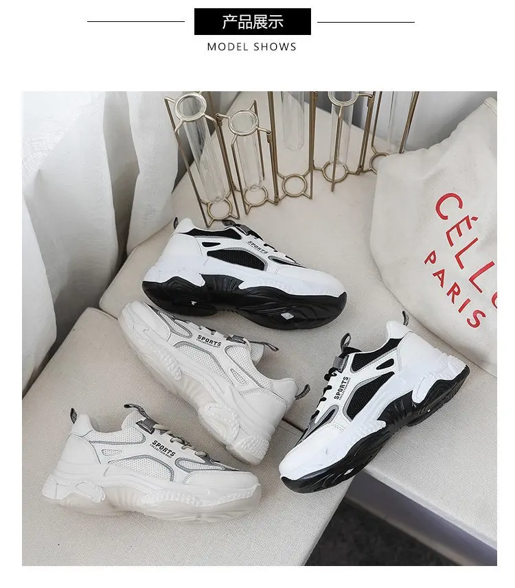 Кроссовки женские массивные Спортивная сетчатая обувь на платформе со шнуровкой
