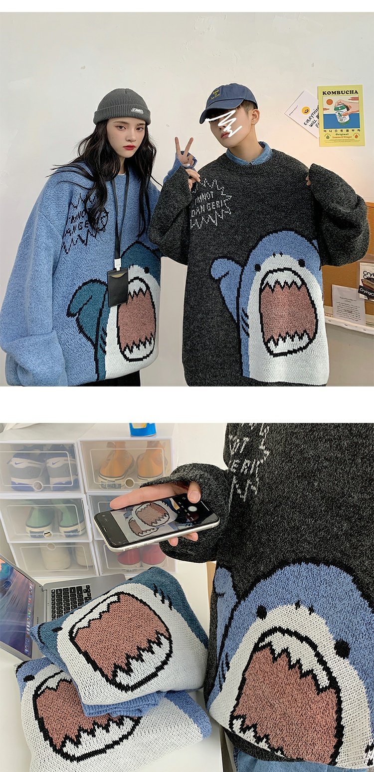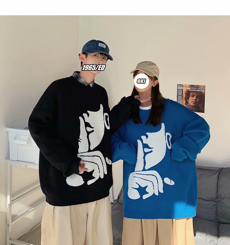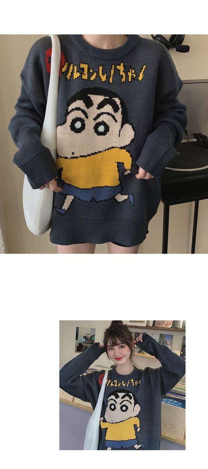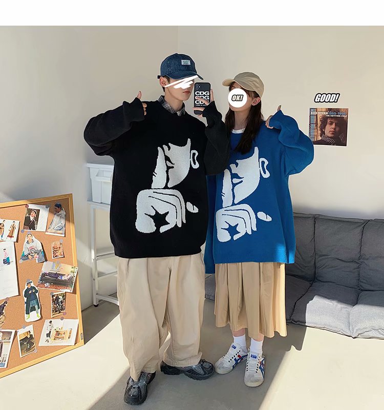 Женский свитер с рисунком, вязаный джемпер большого размера в стиле хип-хоп на осень и зиму, Японская уличная одежда