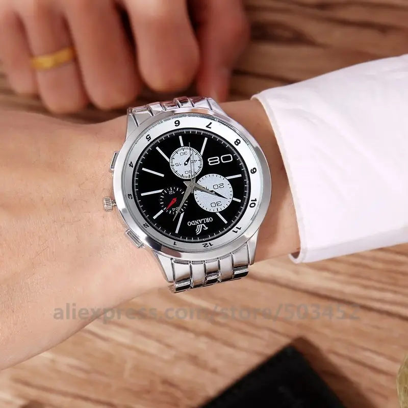 ORLENDO 8412 часы со шкалой гвоздики три глаза ремешок стальной ремень часы для мужчин подарки модные стильные часы