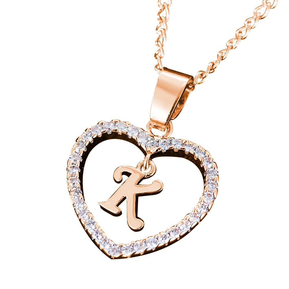 Особенности: 26 букв, форма сердца, кубическая циркониевая инкрустация
