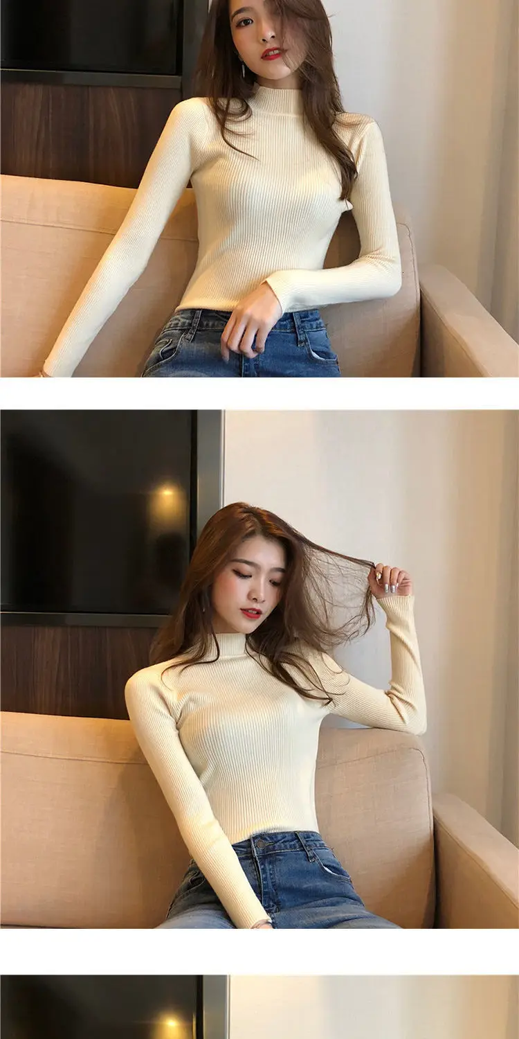 Autumn Winter Big Size 3XL Warm Sweater Women Knitted Ribbed Pullover Long Sleeve Turtleneck Slim Jumper Soft Pull Femme | Женская