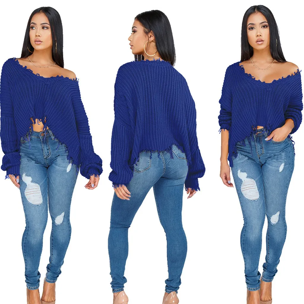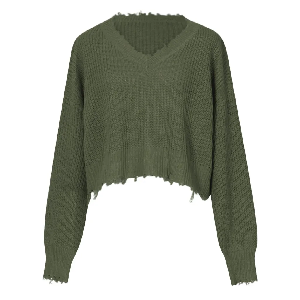 Women's Fashion Autumn/Winter Long Sleeve Knitted V-neck Sweaters Wrap Pullover