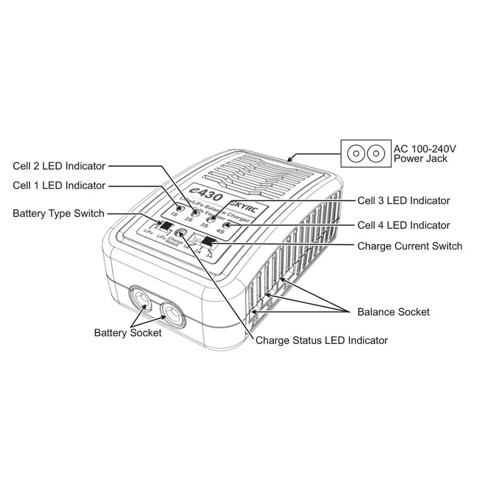 Зарядное устройство SKYRC e430-это экономичное, высококачественное Зарядное устройство переменного тока 100-240 В, предназначенное для зарядки LiPo или аккумуляторов с 2-4 ячеек в режиме баланса. Мощность цепи 30 Вт и максимальный ток заряда может достигать 3 А. Есть три вида заряда тока 1A/2A/3A, которые могут быть выбраны. Вы можете выбрать подходящий ток заряда в соответствии с емкостью аккумулятора.