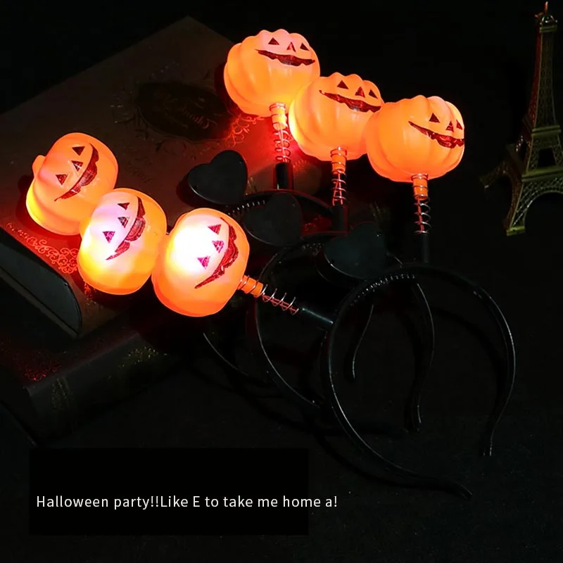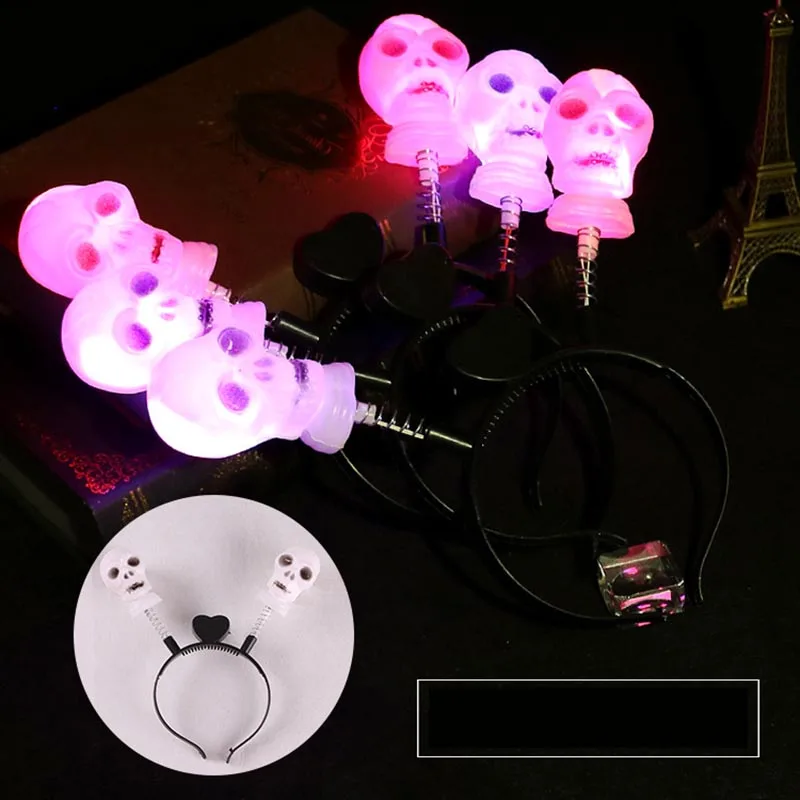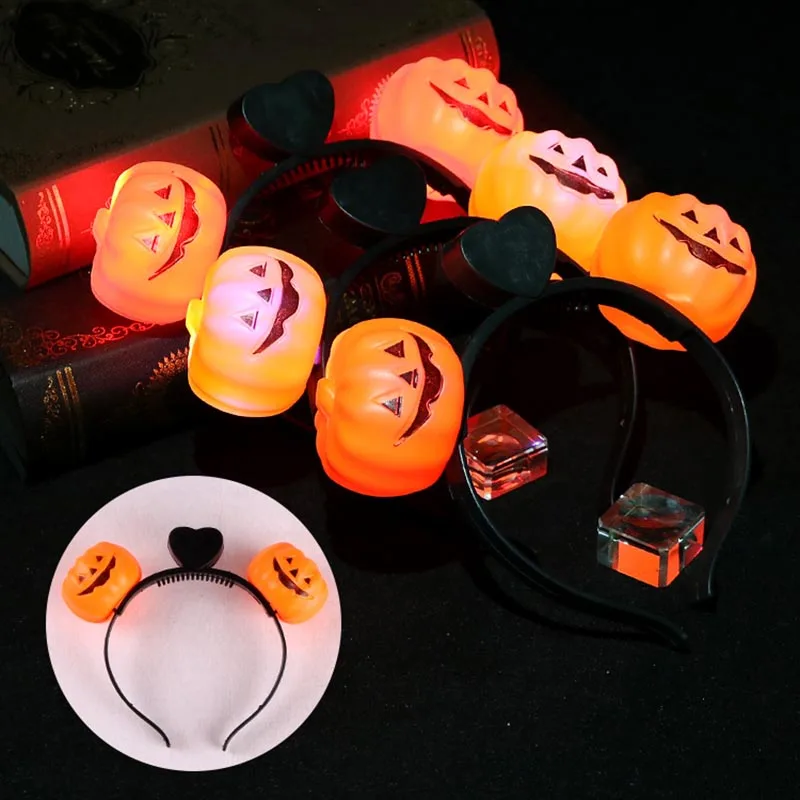 Взрослые Дети Хэллоуин Мультфильм Тыква повязки на голову с черепом световой светодиодный головной убор осветить обруч волос Косплей Костюм вечерние сувениры