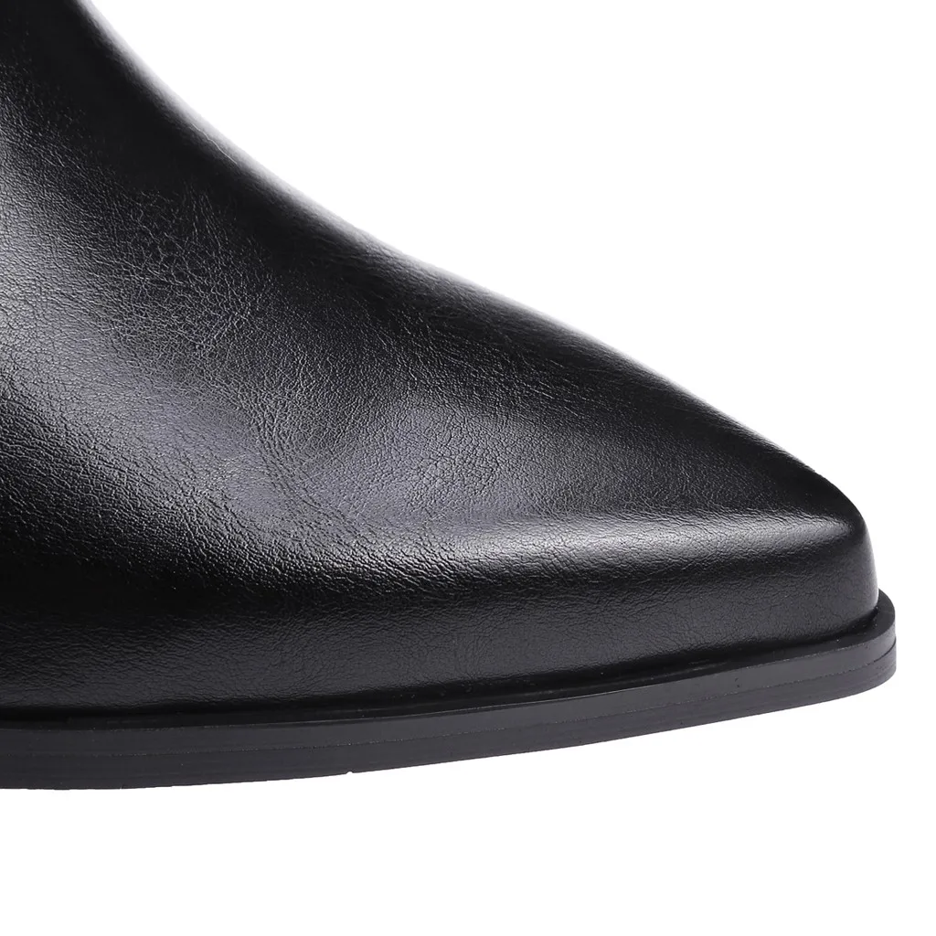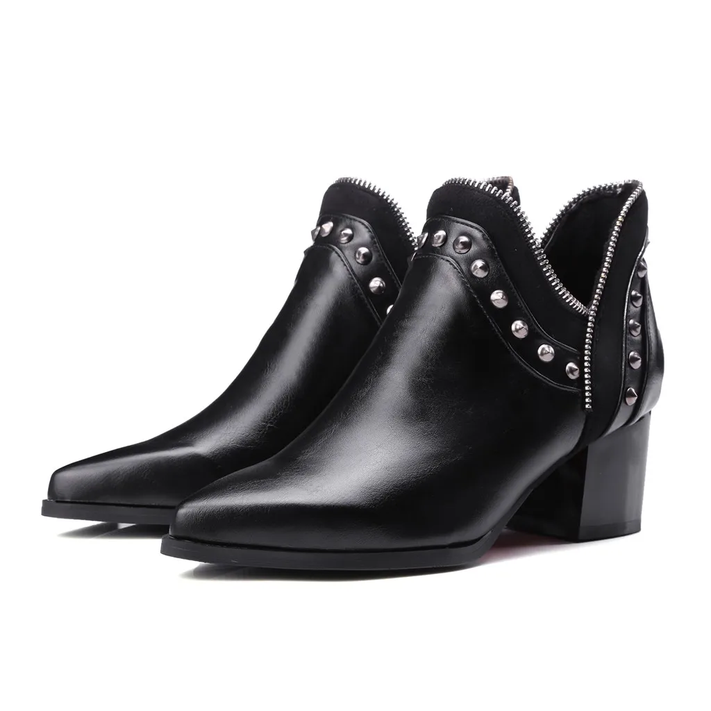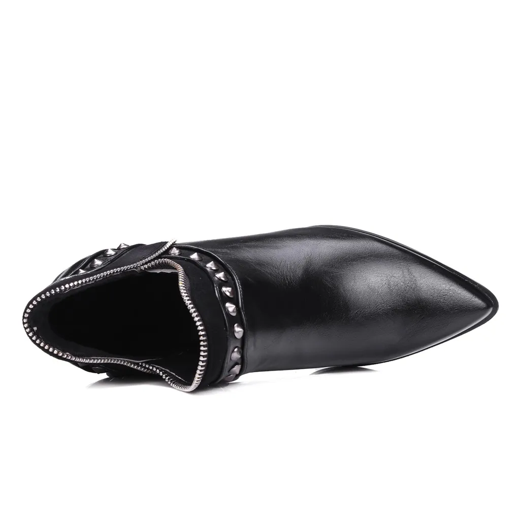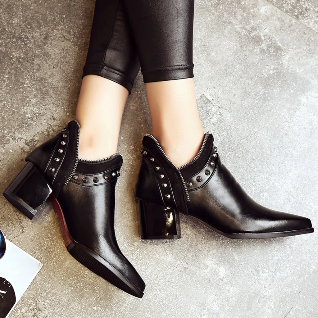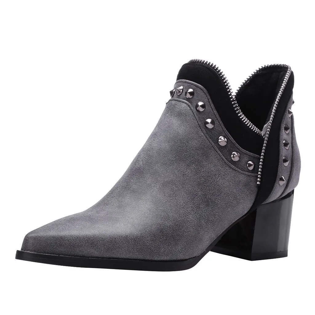 Женские ботинки с острым носком; Уличные крутые ботильоны; Обувь из толстой кожи
