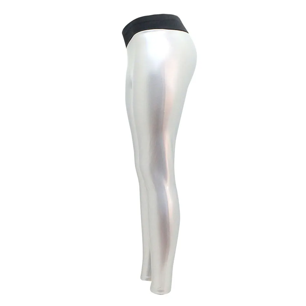 Женские блестящие спортивные Леггинсы для фитнеса; Брюки